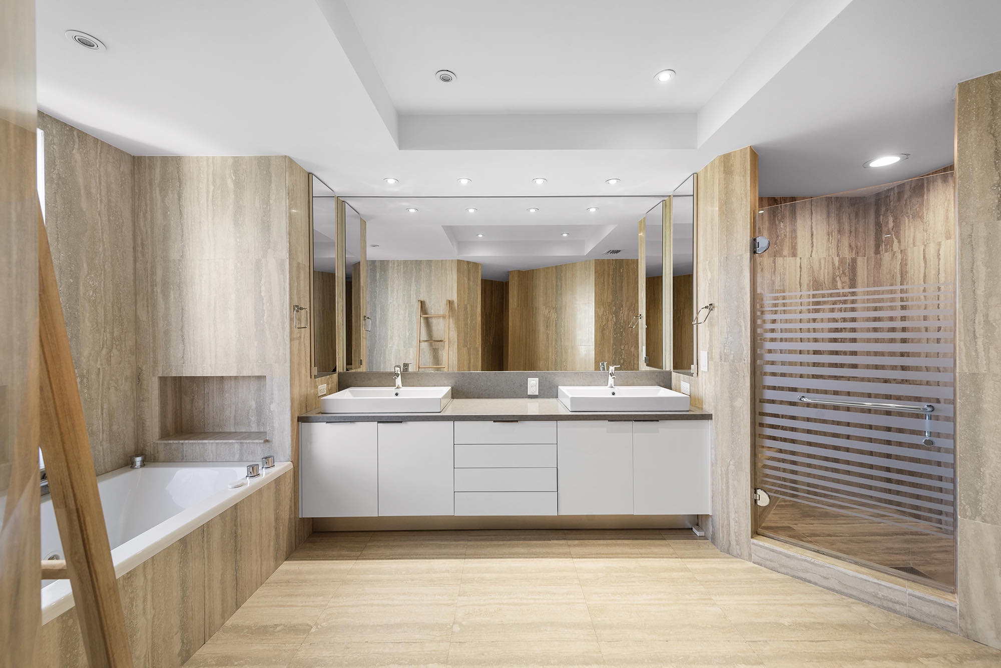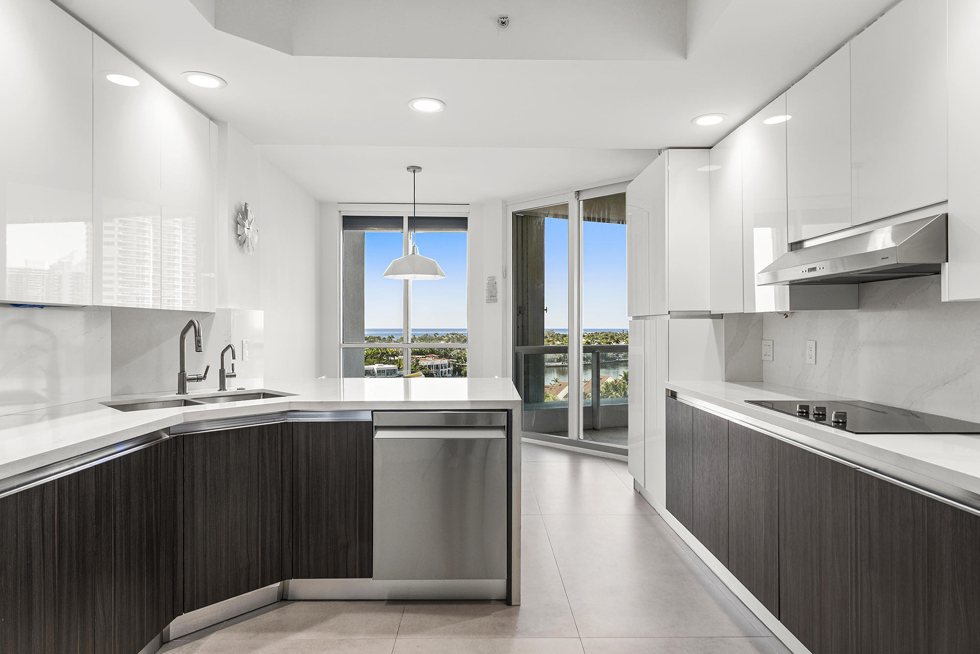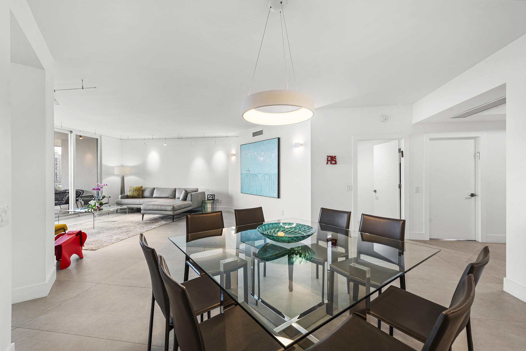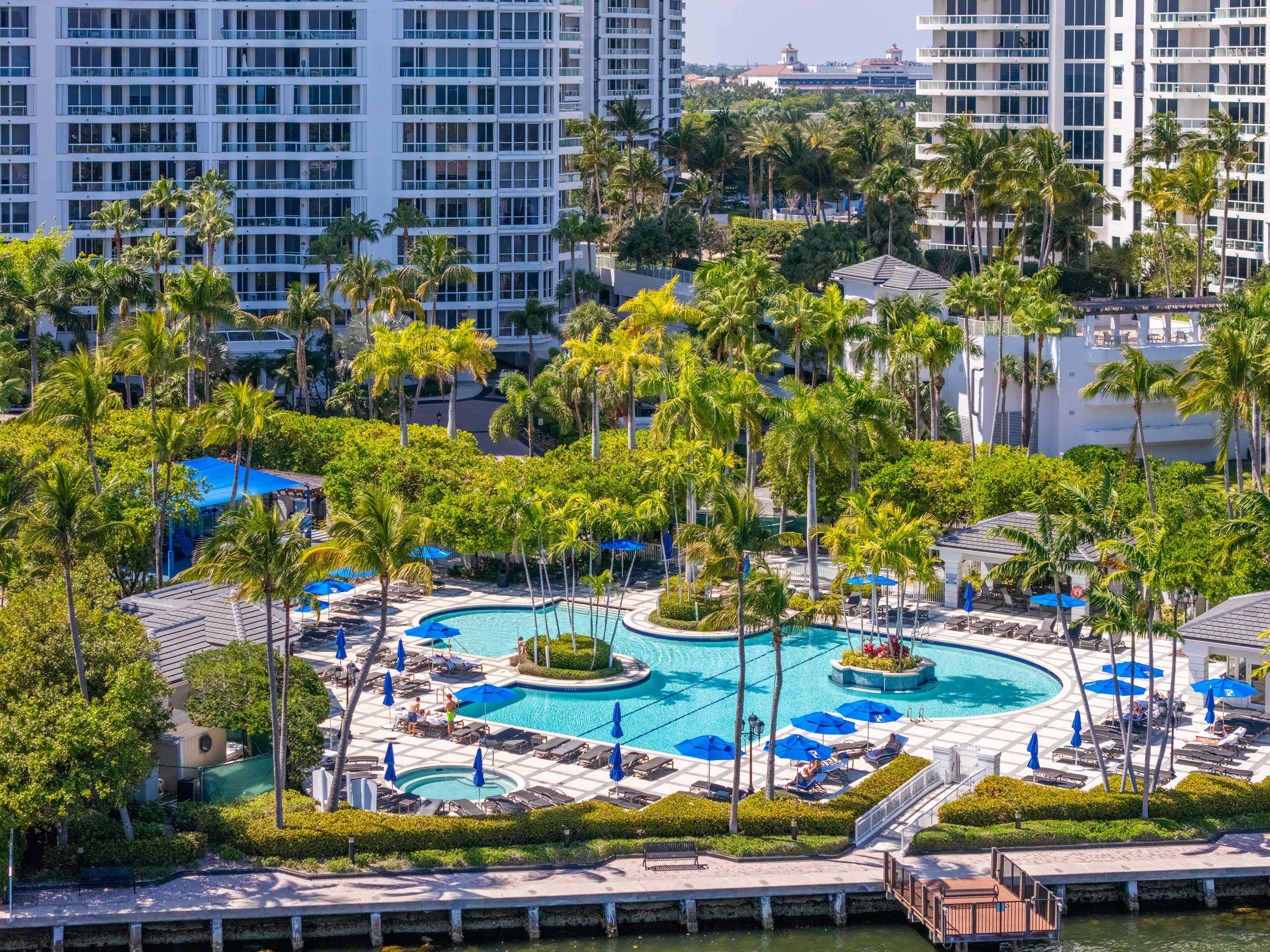 Located in the prestigious Atlantic III, this luxurious apartment offers breathtaking water views and exceptional comfort. It features 3 spacious rooms - one currently used as an office, two full baths, and a half bath. The master suite is a private sanctuary with high-end electronic blinds and walk-in closet, complemented by elegant non-electronic blinds throughout. Polished porcelain floors run seamlessly across the living spaces. The master bathroom, crafted from premium travertine, and the mosaic-tiled second bath add sophisticated touches. Residents enjoy world-class amenities such as a billiard room, private aerobics, a movie theater, valet service, 24-hour concierge, security, a library, and a fully equipped gym—perfect for a refined, convenient lifestyle.